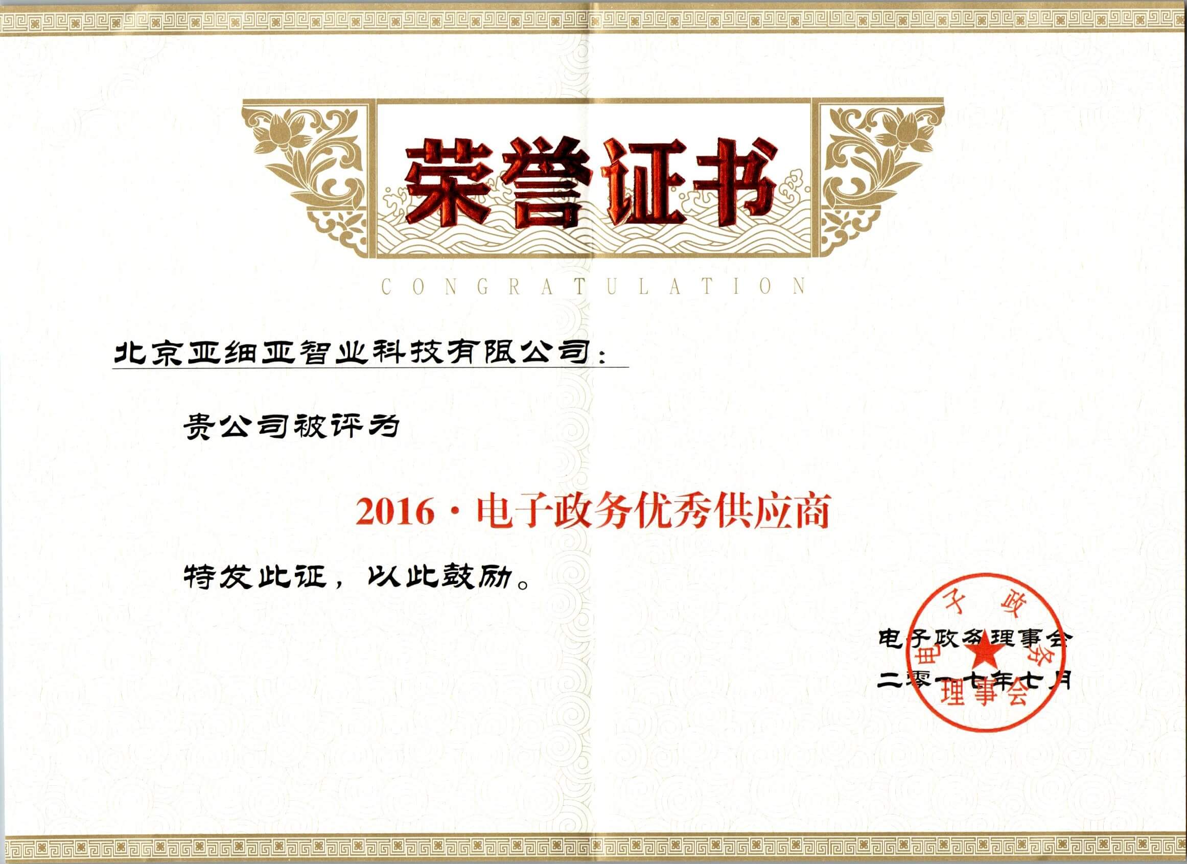 2017年電子政務(wù)優(yōu)秀供應(yīng)商
